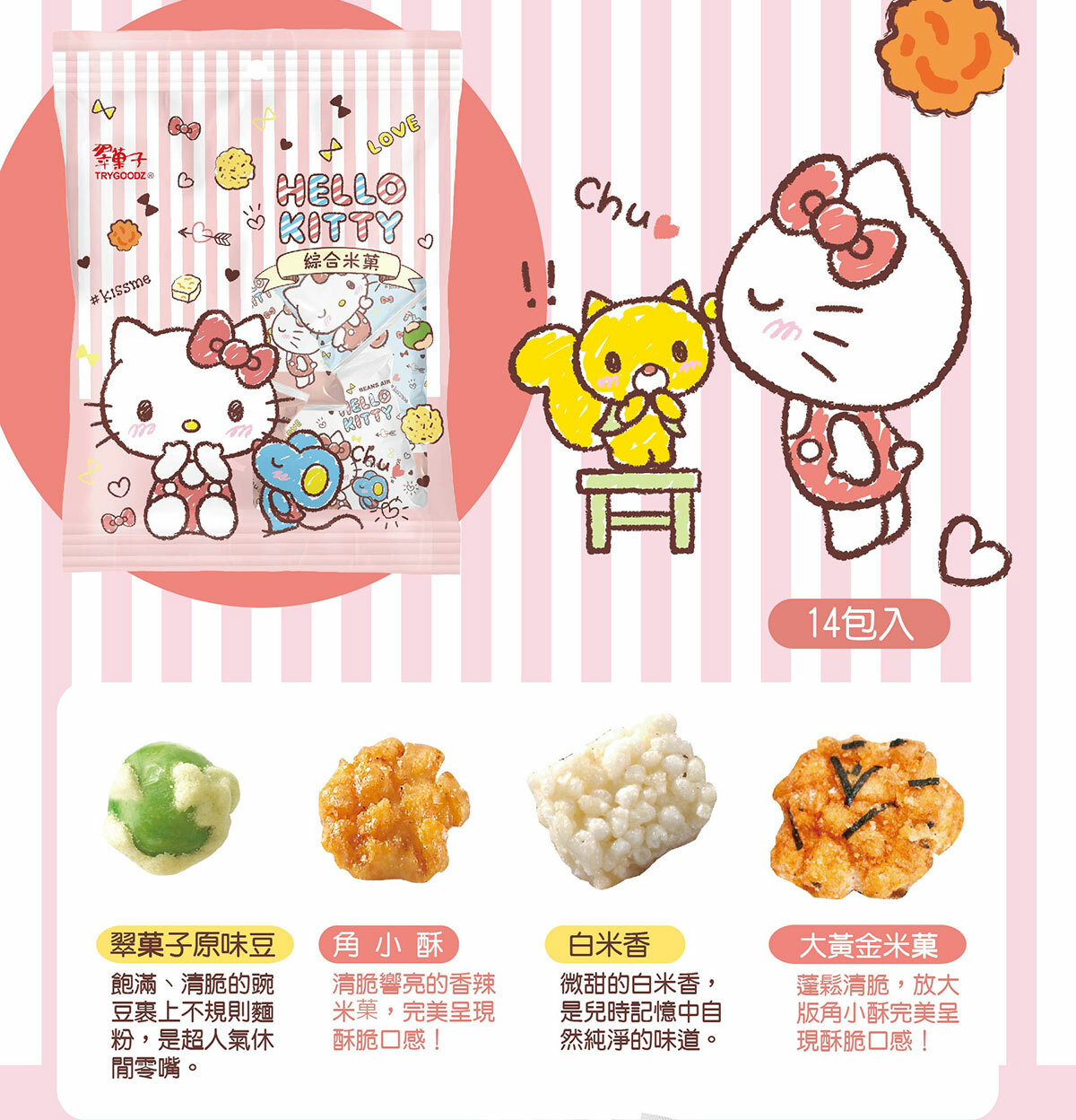 內容物:角小酥、翠菓子原味豆、白米香、大黃金米菓