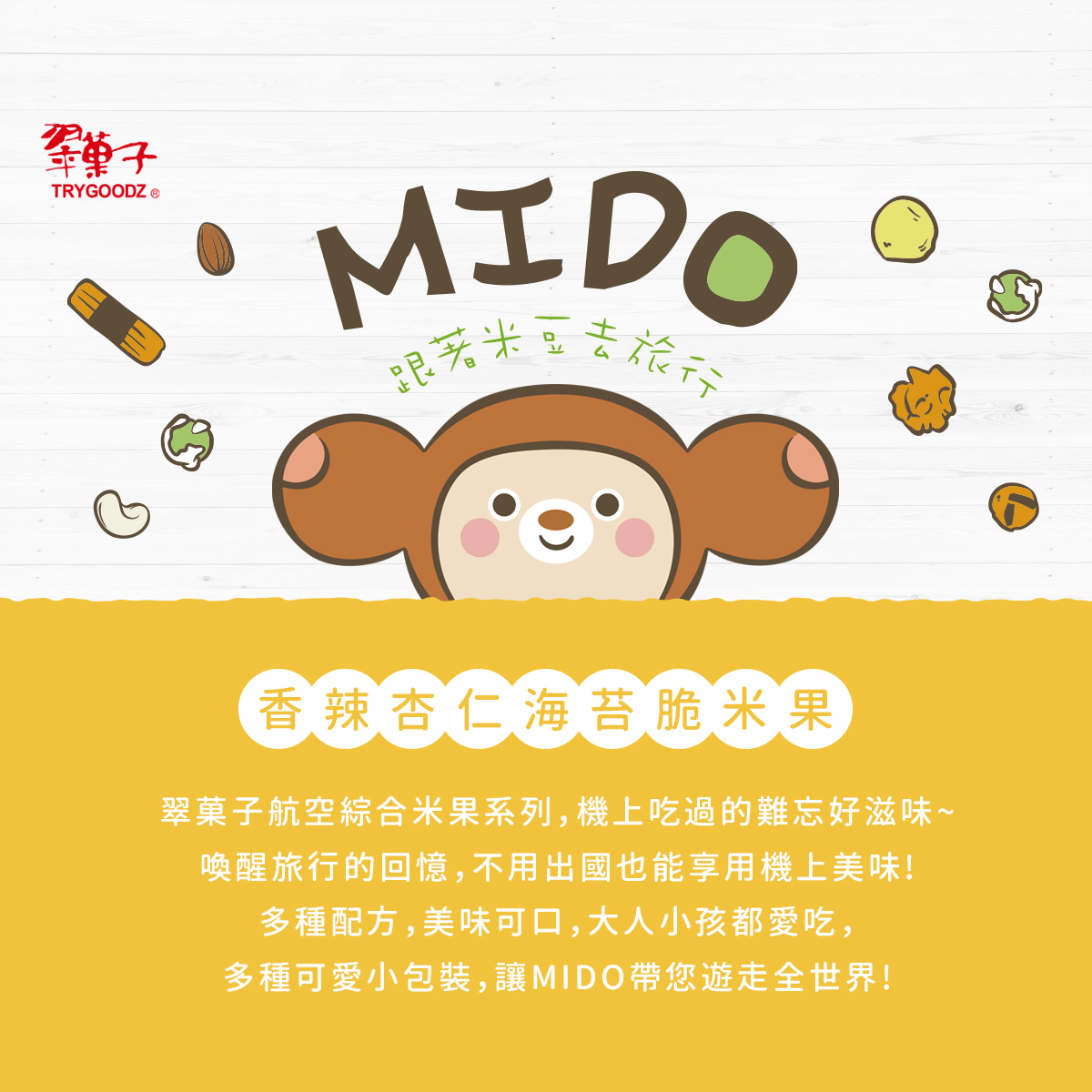 內容物:麻辣杏仁條、海苔天婦羅、麻辣柿種米果、醬油米果